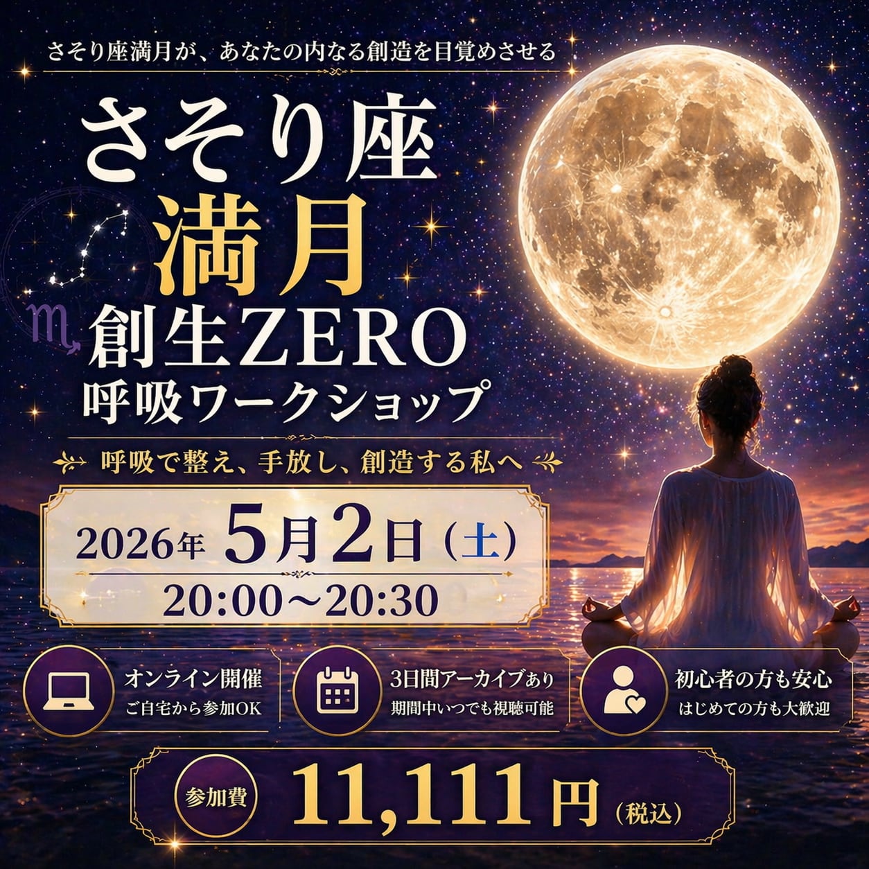 5月2日(土)20:00〜20:30さそり座満月 創生ZERO呼吸ワークショップ